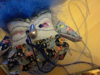 為怕橡筋太實令每回費太大力會把貓頭鷹壓扁,改用了絲帶繫結。